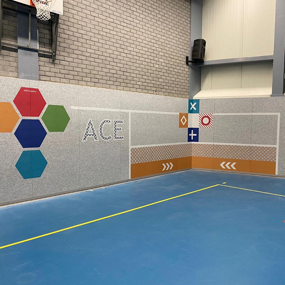 De oplossingen van Acour zijn volledig op maat, waarbij bestaande voorzieningen geïntegreerd kunnen worden. Het materiaal dat hiervoor wordt gebruikt zorgt voor een hoge geluidsabsorptie en is bovendien gemaakt van 60% gerecycled materiaal. Ook niet onbelangrijk voor een plek waar sporten worden beoefend: de oplossingen zijn balvast en bestendig tegen lichamelijk contact! Er zijn verschillende kleuren en bedrukkingen mogelijk, zodat de oplossing altijd mooi aansluit bij de look-and-feel van jouw zaal.
