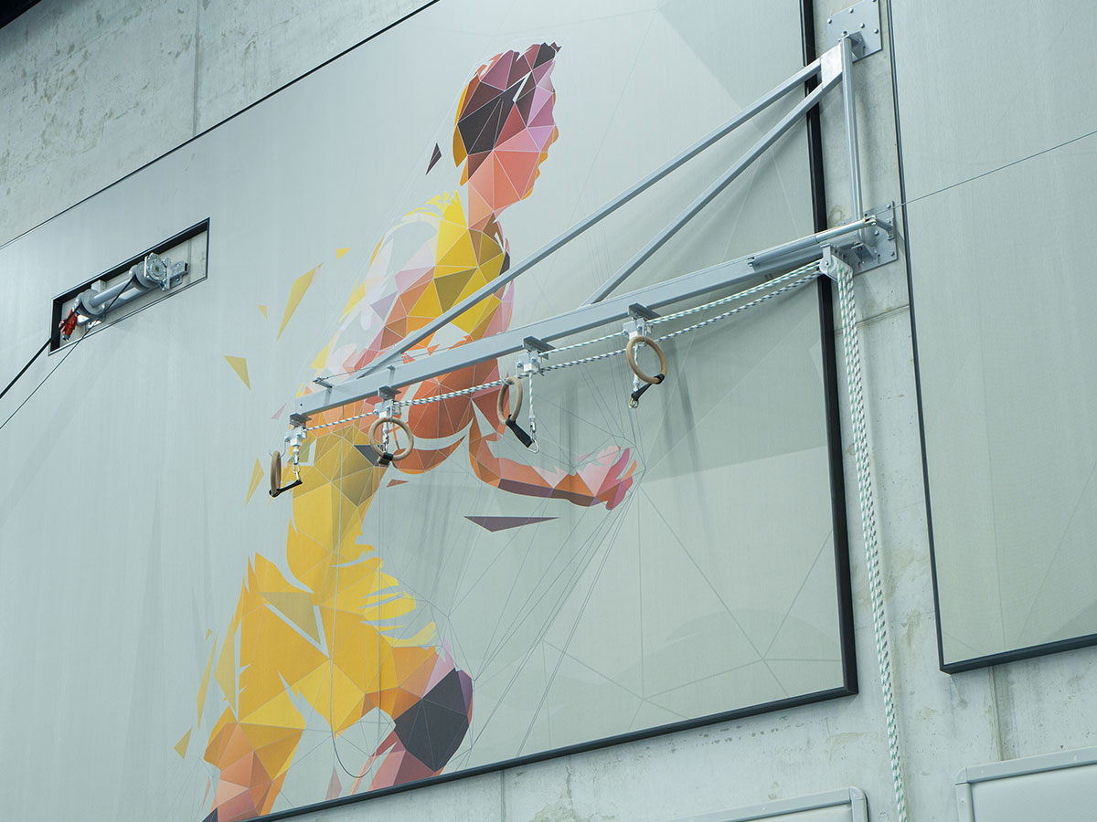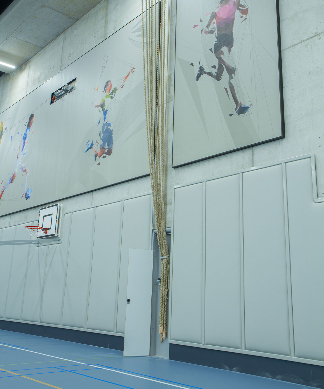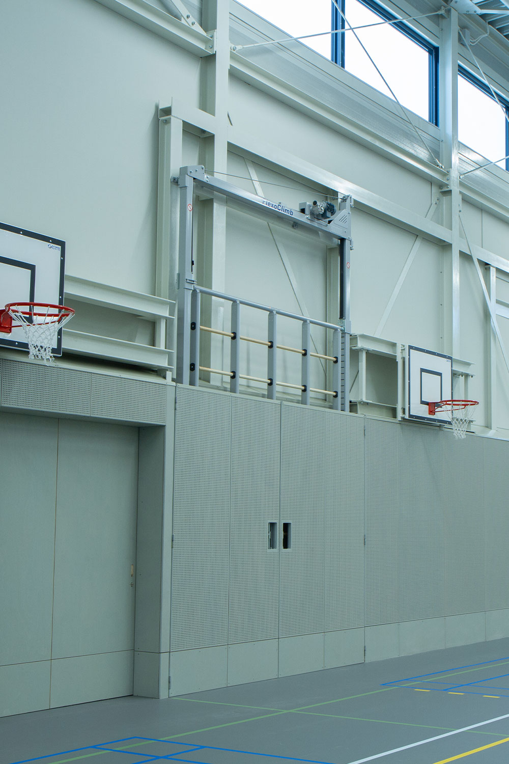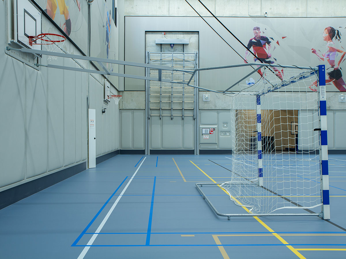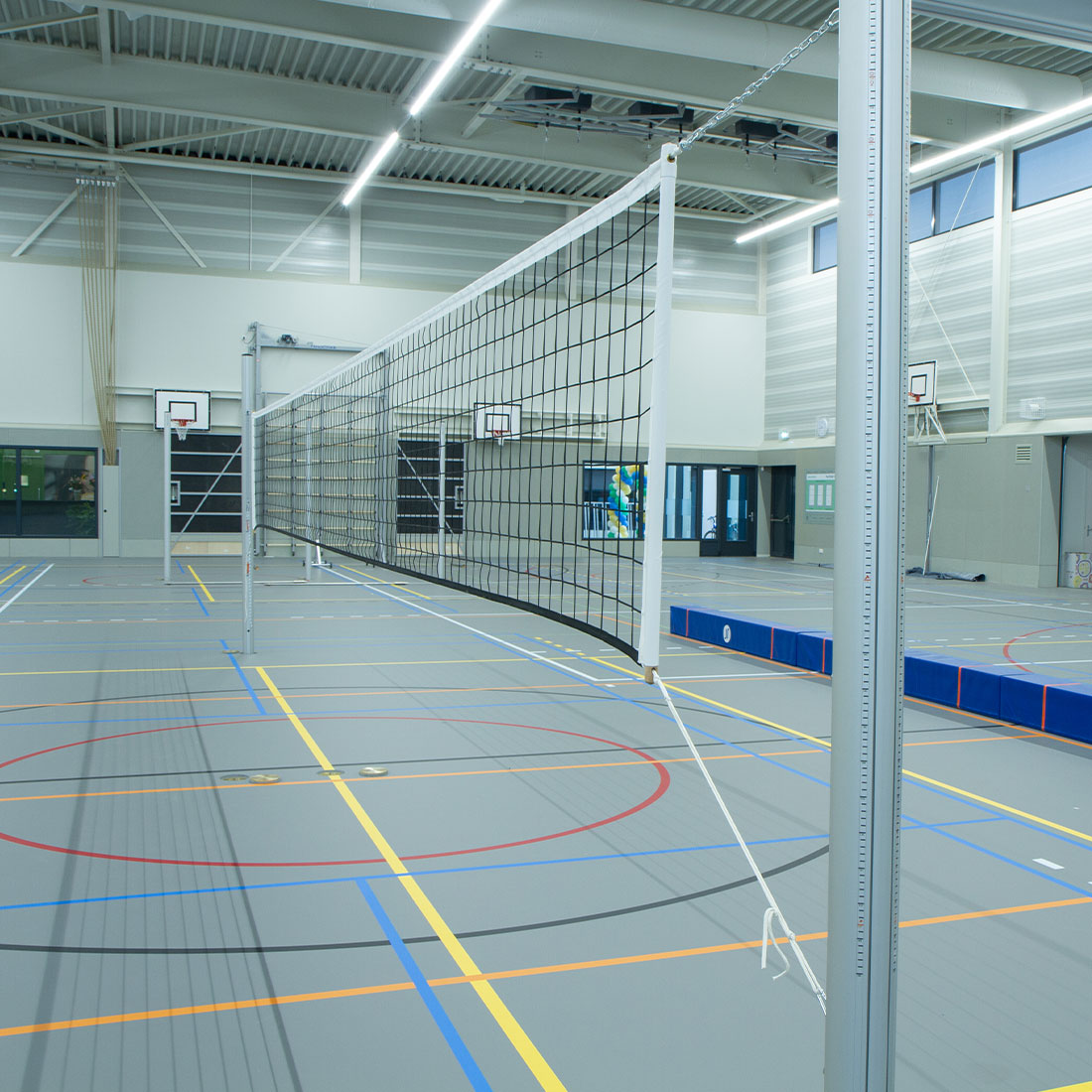 De sporthal Het Plein in Utrecht beschikt ook over scheidingswanden. Daarnaast zijn er twee ophijsbare doelen geïnstalleerd, een installatie met wegdraaibare ringstellen, een klimraam en vier Flexotronic plafondunits. Het Plein beschikt ook over akoestische panelen en een groot aantal grondpotten. Daarin kunnen de meegeleverde telescopische zuilen worden gebruikt. In combinatie met een rekstok of een combiframe kunnen de zuilen voor allerlei toepassingen worden gebruikt, zoals een parcours.