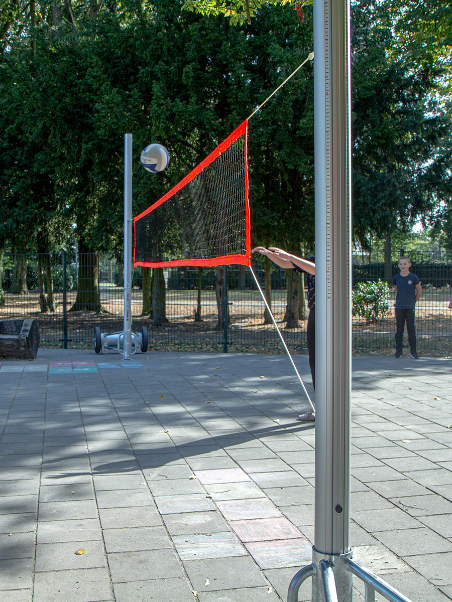 Voor stranden en buitenterreinen is er de multifunctionele beachvolleybalset, die ook geschikt is voor footvolley en beachtennis.